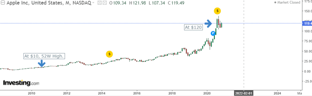 Momentum Trading is very simple concept which means buying securities that are rising and selling them when they look to have peaked. Stock market has the history of finding new outperformers every decade and history of major failed companies filing bankruptcy. Major companies usually trade at their peak prices due to higher attention and valuation offered by active investors. This is the reason, “We find stocks which are smaller companies showing prospect of rising from 100 to 1000, and not from 1000 to 1500. Those price ranges only mean that, smaller companies have potential to gain higher market capitalization and rise 10x when compared to bigger companies. So, the very first rule is to find companies which are smaller in sizes. And, it is obvious to go for smaller companies when we try to find the outperformers for the next decade, i.e. the next apple (Apple rose from $10 in 2010 to $120 in 2020.)